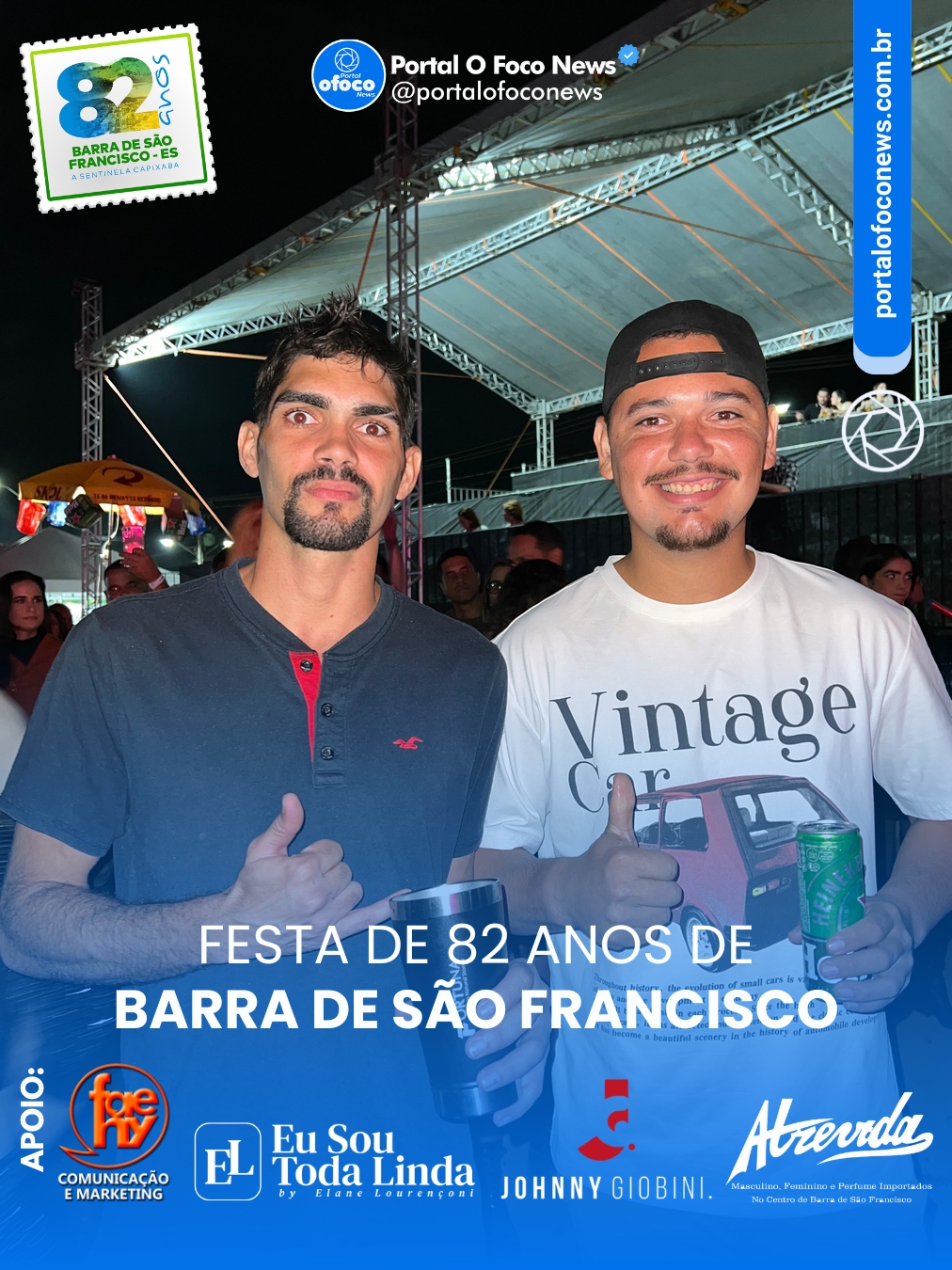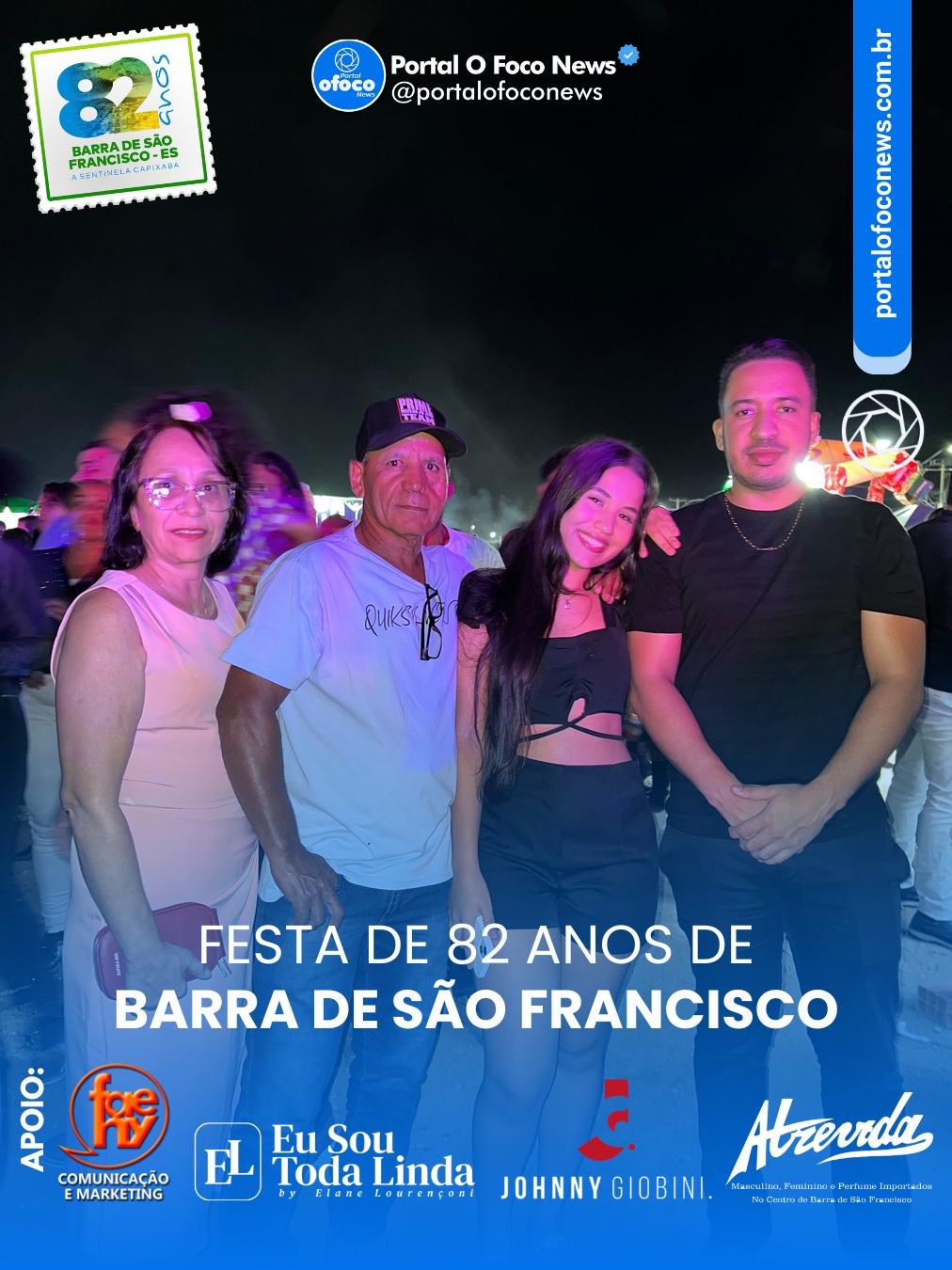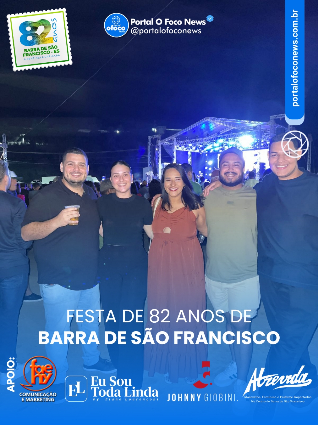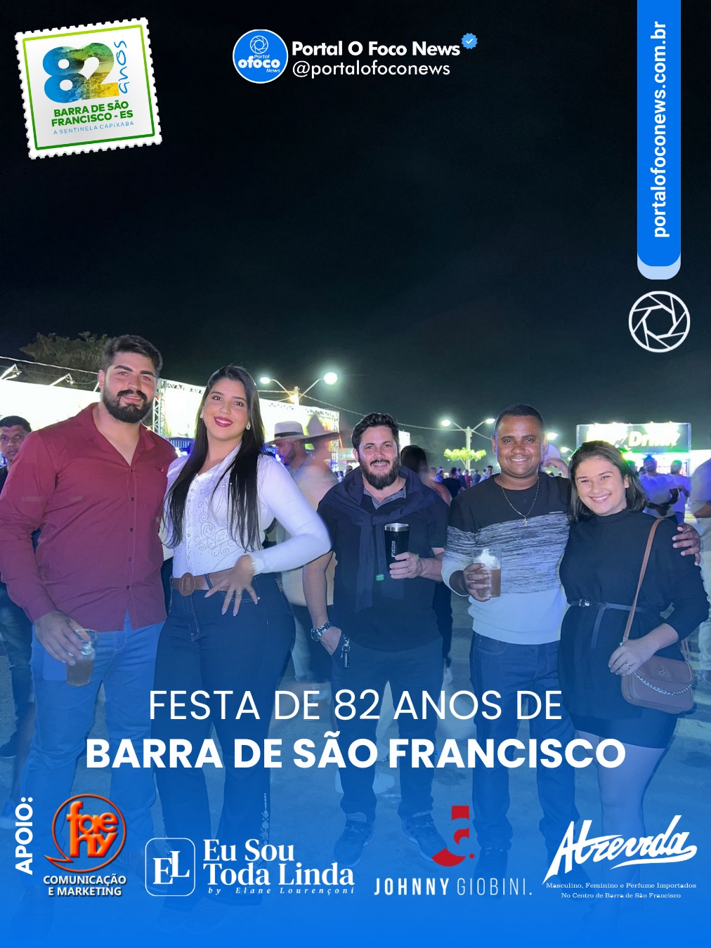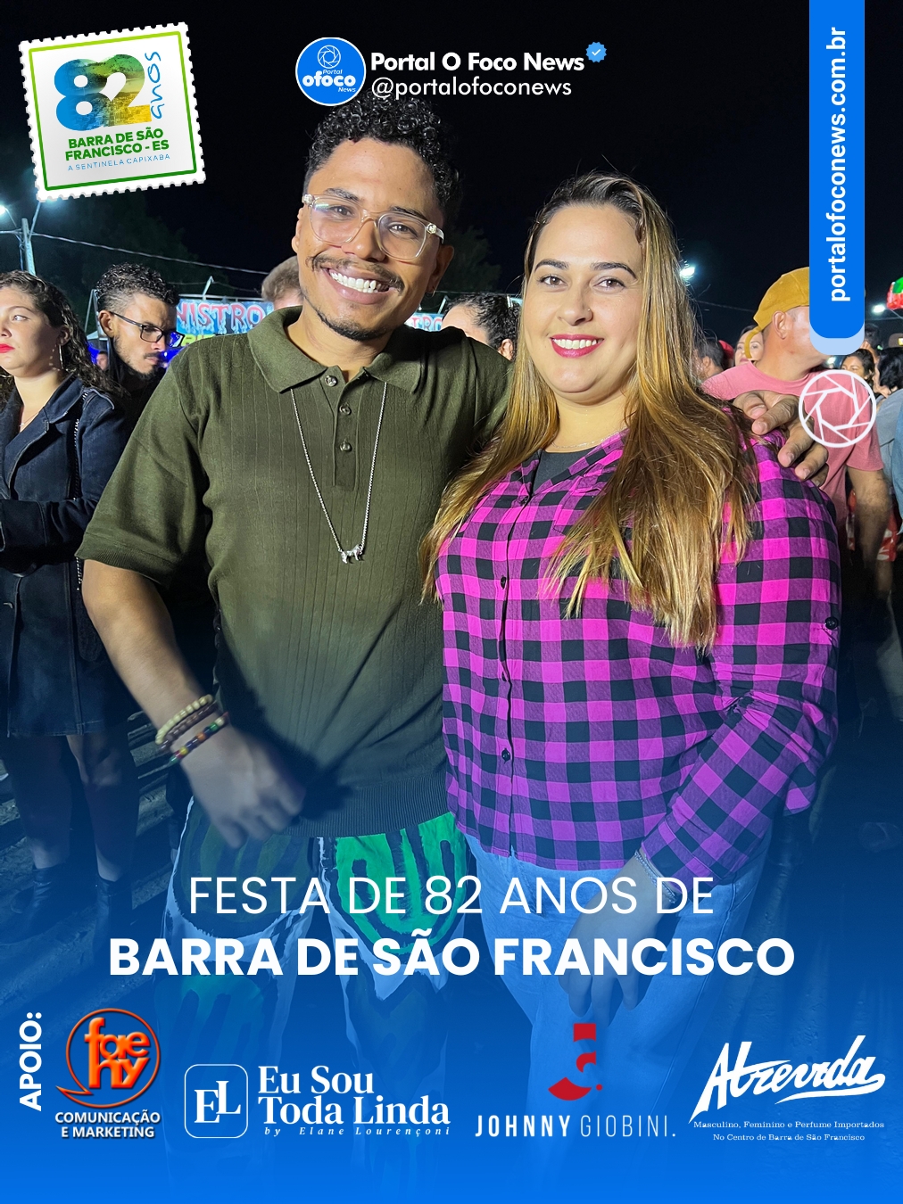A comemoração dos 82 anos de Barra de São Francisco começou com muita animação e um público cheio de energia! Na primeira noite da festa, a cidade foi tomada por sorrisos, reencontros e momentos inesquecíveis. A equipe do Portal O Foco News esteve presente para registrar tudo, e já estamos divulgando as fotos dos francisquenses que fizeram questão de celebrar juntos essa data tão especial.