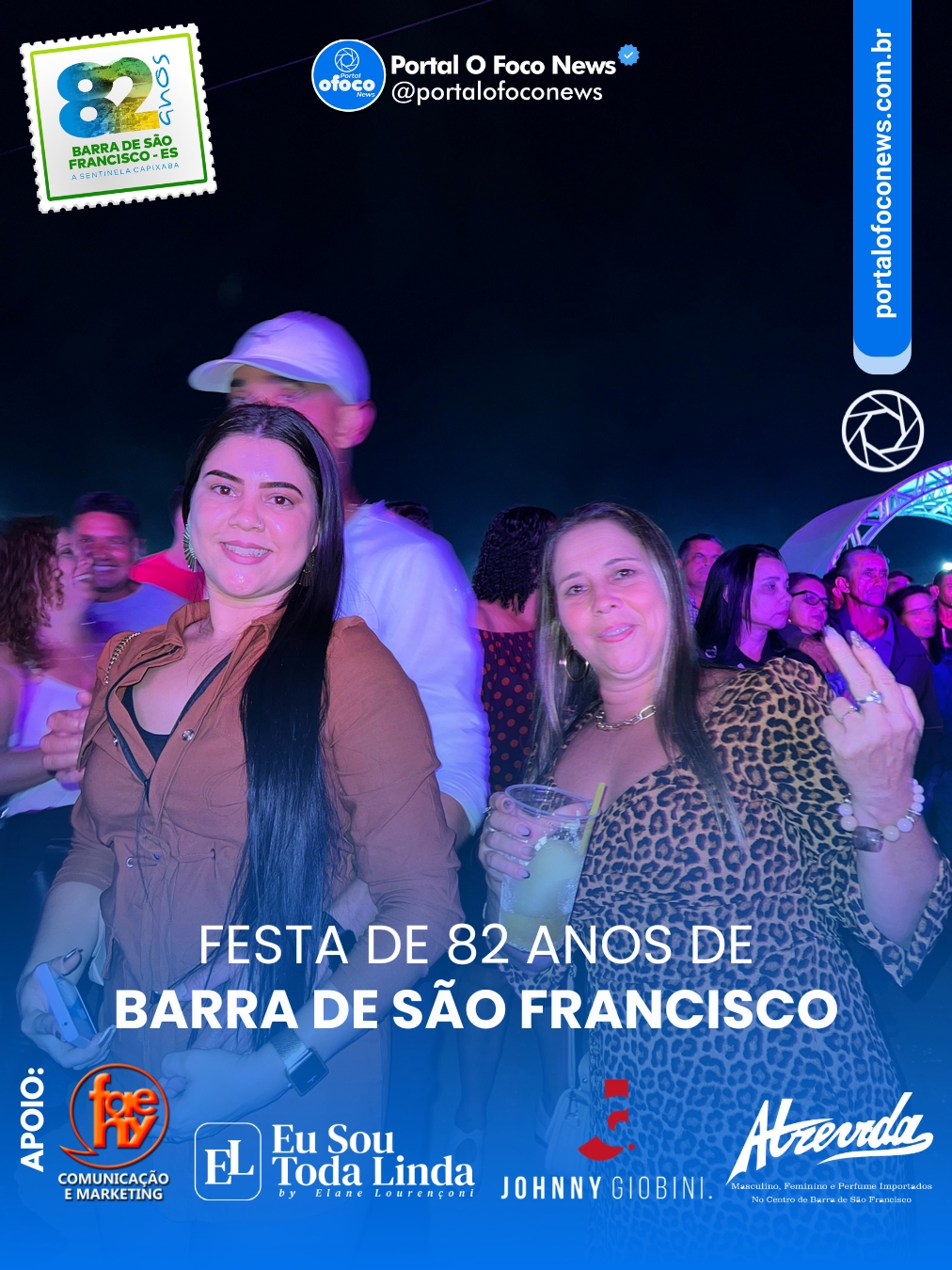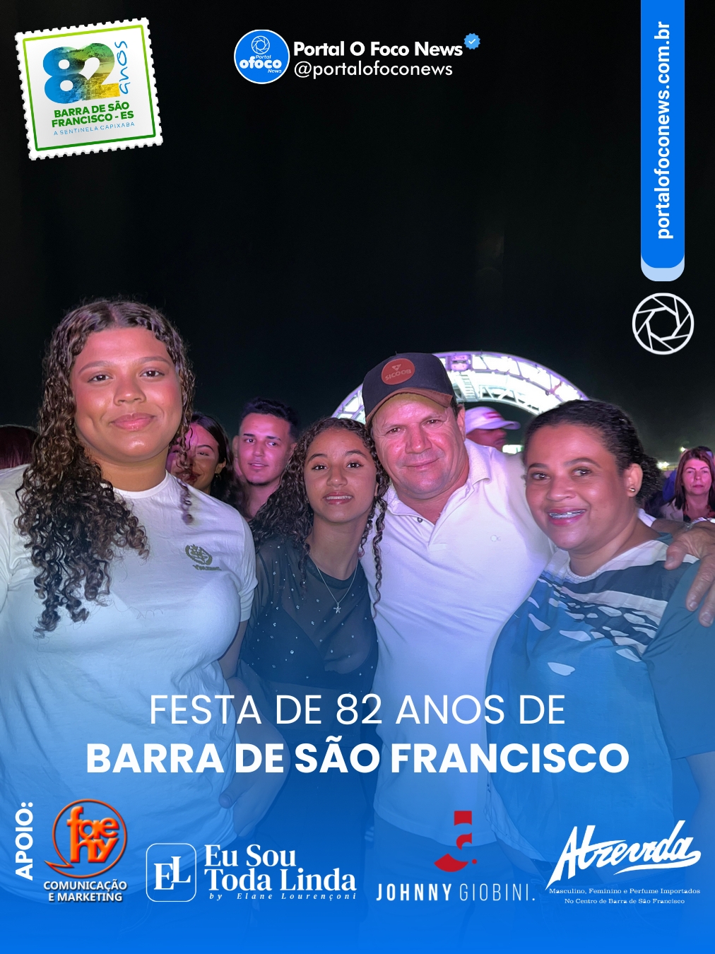 A comemoração dos 82 anos de Barra de São Francisco começou com muita animação e um público cheio de energia! Na primeira noite da festa, a cidade foi tomada por sorrisos, reencontros e momentos inesquecíveis. A equipe do Portal O Foco News esteve presente para registrar tudo, e já estamos divulgando as fotos dos francisquenses que fizeram questão de celebrar juntos essa data tão especial.