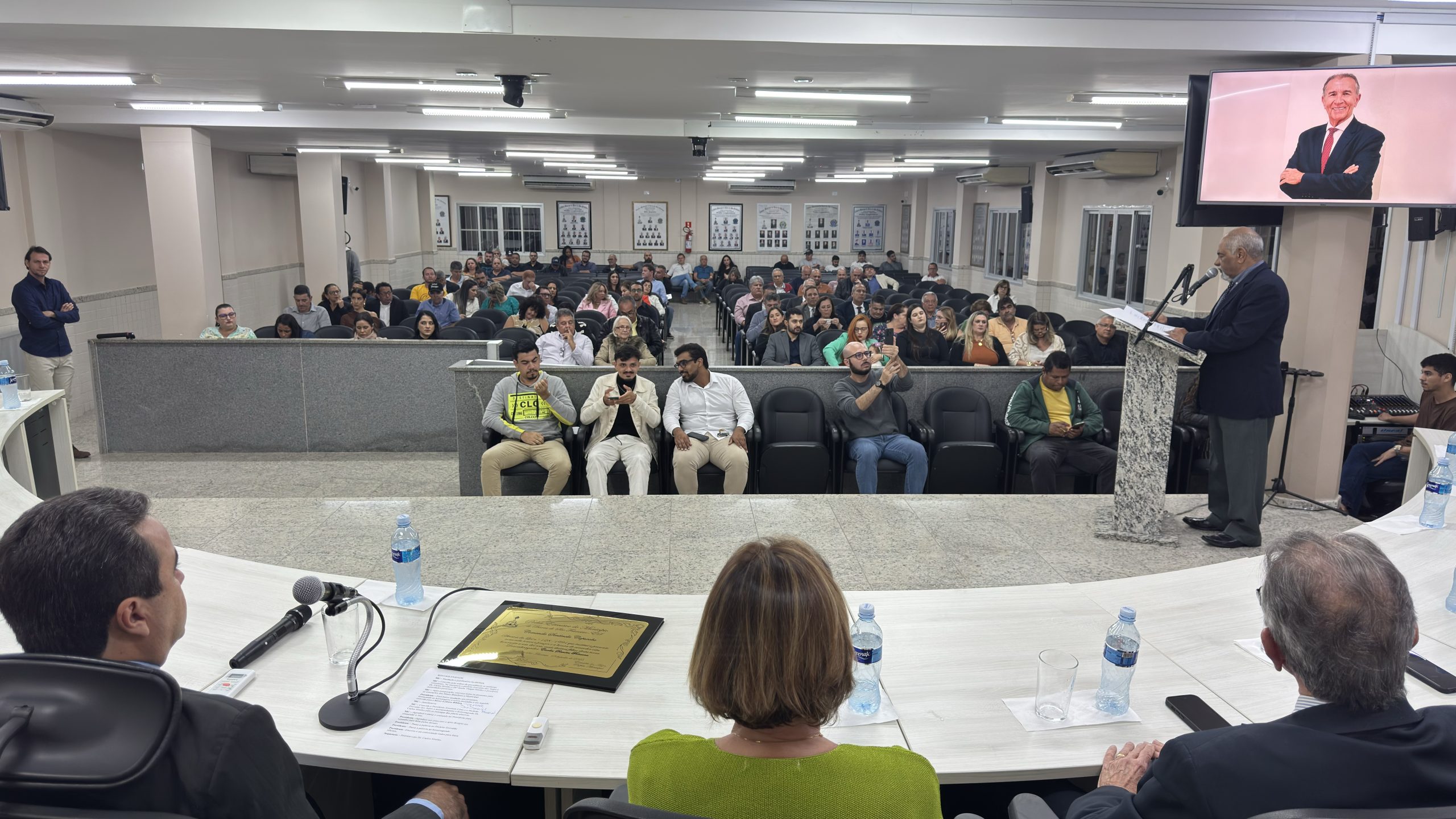 A cerimônia teve início às 17h no plenário da Câmara e contou com a presença de autoridades, familiares, amigos e membros da comunidade francisquense, que prestigiaram o evento em reconhecimento ao legado deixado por Carlos Simões.