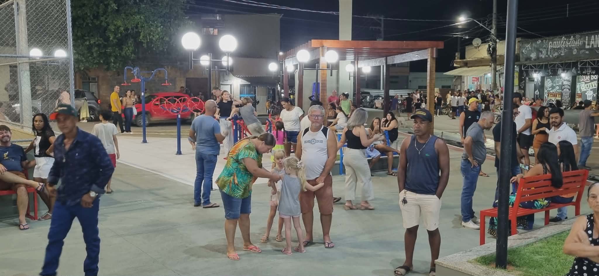 A nova praça se destacou pela iluminação moderna, que trouxe mais segurança e valorização ao ambiente. O local dispõe de playground, pergolados, quadra de areia, academia ao ar livre, brinquedos infantis, jardins e áreas pavimentadas, proporcionando um espaço organizado e acolhedor para a população.