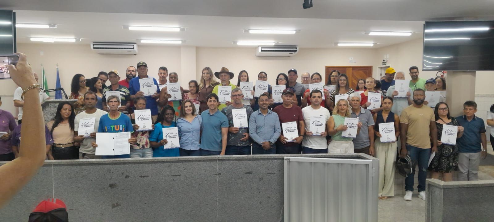 A Prefeitura de Barra de São Francisco realizou, na noite desta quinta-feira (5), a primeira cerimônia de entrega de títulos de propriedade de 2026, referente ao primeiro lote de regularizações fundiárias do ano. O evento aconteceu no plenário da Câmara Municipal, no bairro Irmãos Fernandes, e beneficiou dezenas de famílias com a garantia legal de seus imóveis.