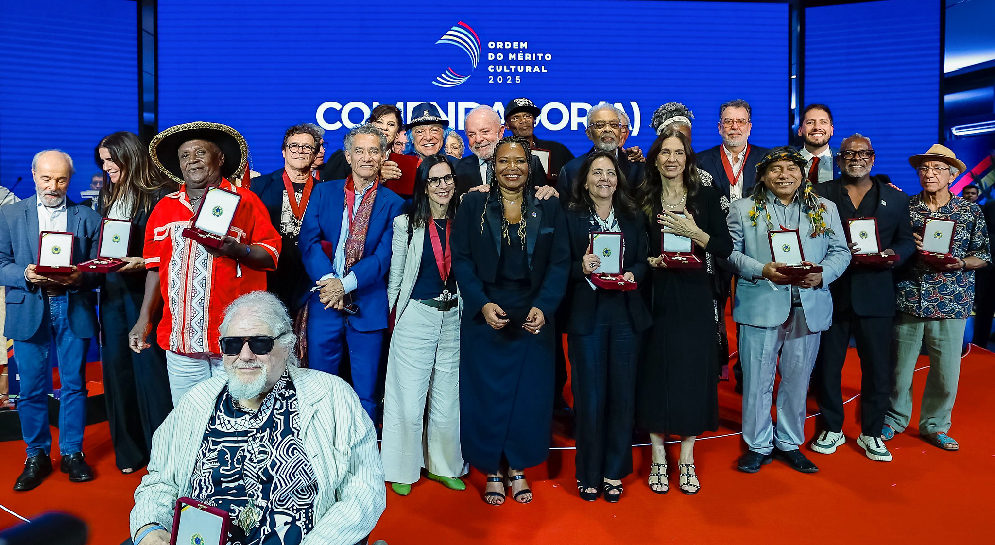 O presidente Luiz Inácio Lula da Silva (PT) entregou nesta 3ª feira (20.mai.2025) a Ordem do Mérito Cultural, a maior honraria do setor cultural brasileiro, para 112 artistas e intelectuais e para 14 instituições, em cerimônia no Palácio Gustavo Capanema, no Rio.