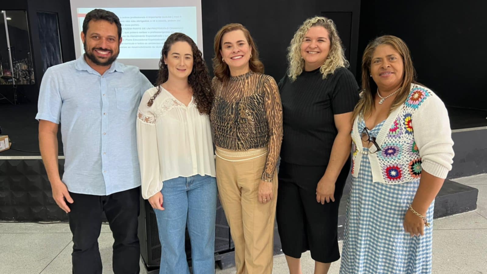 No último dia 16 de maio de 2025, a assessora especial do governo de Barra de São Francisco, Delma Ker, representando também a Secretaria Municipal de Educação, participou de uma importante formação continuada no município de Pinheiros/ES. O evento foi realizado a convite do secretário municipal de educação de Pinheiros, professor Udison Brito Oliveira, e teve como público-alvo os profissionais das salas de Atendimento Educacional Especializado (AEE), cuidadores e professores da APAE local.