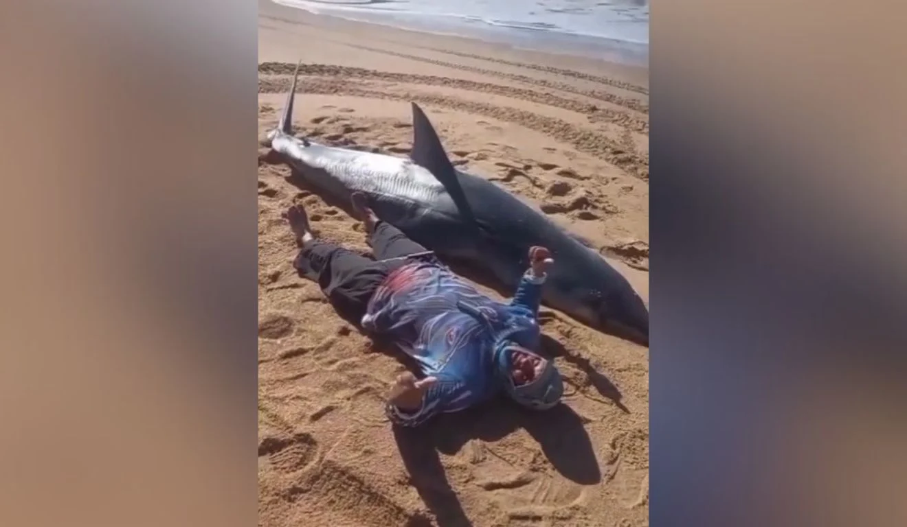 Um tubarão foi encontrado morto na praia de Lagoa do Siri, em Marataízes, litoral Sul do Espírito Santo, na manhã desta segunda-feira (7).